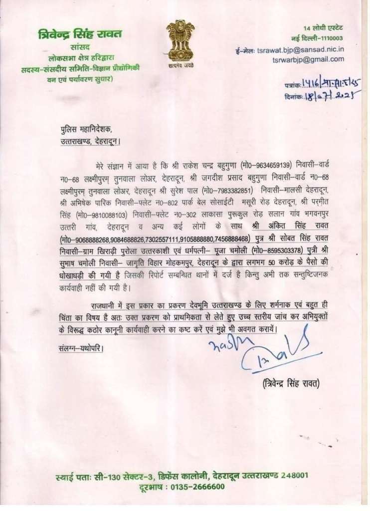पूर्व सीएम तीरथ सिंह रावत के भांजे के साथ 18 करोड़ की धोखाधड़ी, आत्महत्या की दी चेतावनी