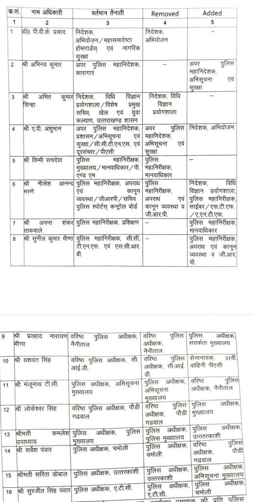 उत्तराखंड पुलिस में बड़ा फेरबदल: 16 IPS-8 PPS ट्रांसफर, 4 जिलों के SSP बदले गए; देखें पूरी लिस्ट