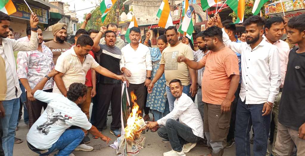 राजपुरा में पाकिस्तान के खिलाफ कांग्रेस का जोरदार प्रदर्शन, झंडा जलाकर आतंकवाद के खिलाफ कड़ी कार्रवाई की मांग