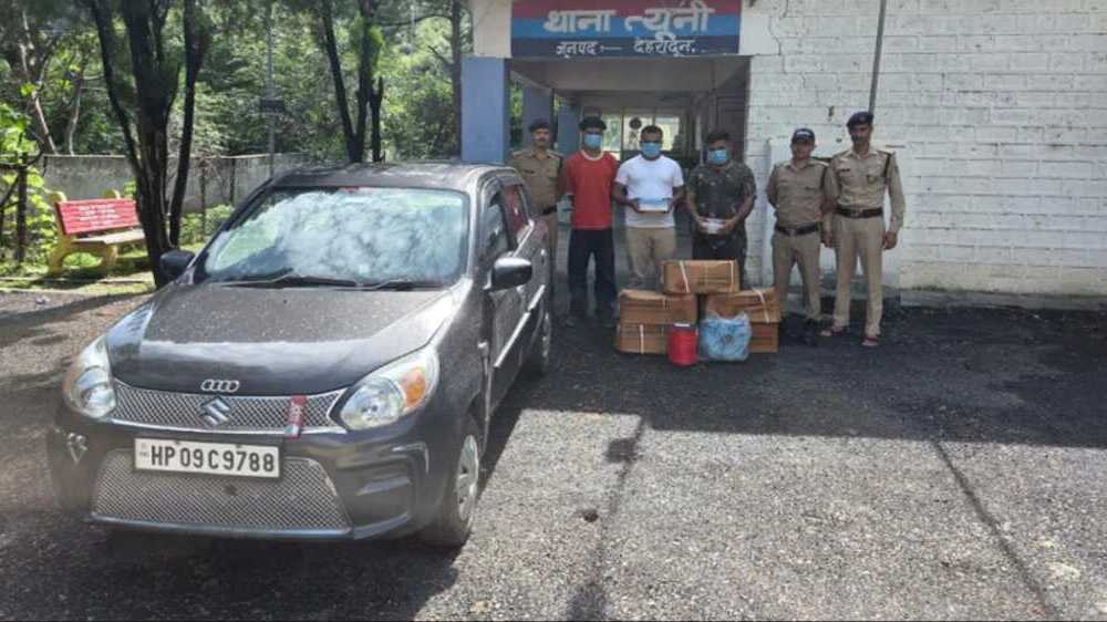 देहरादून। त्यूणी पुलिस ने एक बड़ी कार्रवाई करते हुए 125 किलोग्राम अवैध डायनामाइट के साथ तीन युवकों को गिरफ्तार किया है। यह कार्रवाई चेकिंग के दौरान की गई जब एक संदिग्ध ऑल्टो कार को रोका गया। वाहन की जांच में पांच पेटियों में भारी मात्रा में विस्फोटक पदार्थ (डायनामाइट) पाया गया, जिसका वजन लगभग 125 किलोग्राम था।