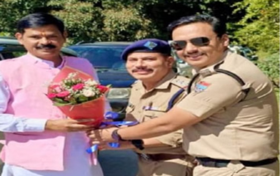वर्दी में भाजपा नेता का स्वागत कर फंसे कोतवाल और पुलिस जवान, फोटो वायरल होते ही मचा बवाल, एसपी ने दिए जांच के आदेश