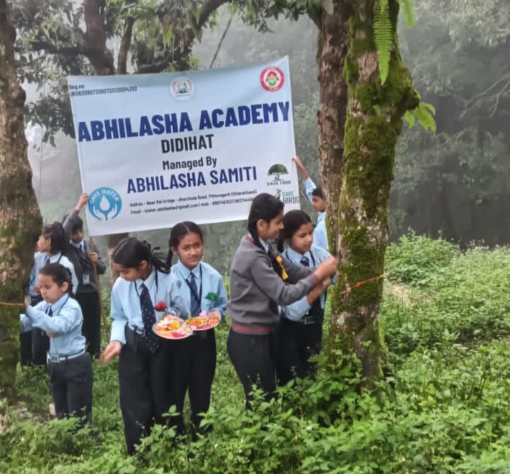 डीडीहाट (पिथौरागढ़)। रक्षाबंधन के अवसर पर अभिलाषा समिति, पिथौरागढ़ के तत्वावधान में संचालित अभिलाषा एकेडमी, डीडीहाट में पर्यावरण संरक्षण को समर्पित एक अनूठी पहल हुई। विद्यालय के छात्र-छात्राओं ने पारंपरिक भाई-बहन प्रेम के प्रतीक रक्षाबंधन को प्रकृति से जोड़ते हुए विद्यालय प्रांगण और आसपास के पेड़ों को राखी बांधी तथा उन्हें संरक्षित रखने का संकल्प लिया।
