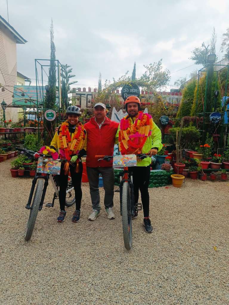 आठ हजार किलोमीटर की साइकिल यात्रा पर निकले सविता और शुभम का पिथौरागढ में स्वागत