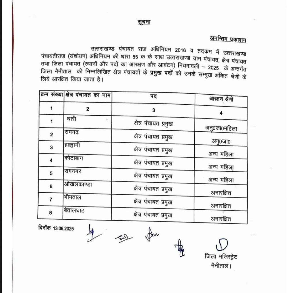 नैनीताल नैनीताल जिले की पंचायत चुनाव की आरक्षण की अनन्तिम सूची, देखें सीटों का विवरण Published 6 months ago on June 14, 2025 By CWN Desk Related Topics:featured Up Next कैंची धाम स्थापना दिवस पर आस्था का सैलाब, 1.25 लाख श्रद्धालुओं ने किए बाबा नीब करौरी के दर्शन Don't Miss कैची धाम मेला 2025: श्रद्धालुओं की अभूतपूर्व भीड़ को देखते हुए सुरक्षा के कड़े इंतजाम, पहली बार ATS और SSB की तैनाती CWN Desk You may like पौड़ी में 24 घंटे में दो हमले! बाघ ने महिला को मार डाला, ग्रामीणों ने शव उठाने से किया इनकार हल्द्वानी: नशे में धुत स्कार्पियो चालक ने चौकी प्रभारी को मारी टक्कर, चालक गिरफ्तार पिथौरागढ़: शादी से लौटते ही मातम! दूल्हे की बहन समेत 4 की मौत, 1 अस्पताल में हरिद्वार: चाचा की हत्या का राजफाश! संपत्ति विवाद में भतीजे ने गला घोंटा, गिरफ्तार उत्तराखंड संविदा कर्मचारी नियमितीकरण: 10 साल सेवा पूरी करने वाले होंगे अब स्थायी! हल्द्वानी: 15 साल की किशोरी से दुष्कर्म, 3 माह की गर्भवती होने पर खुला राज; आरोपी किशोर हिरासत में Click to comment Leave a ReplyYour email address will not be published. Required fields are marked *Comment * Name * Email * Website