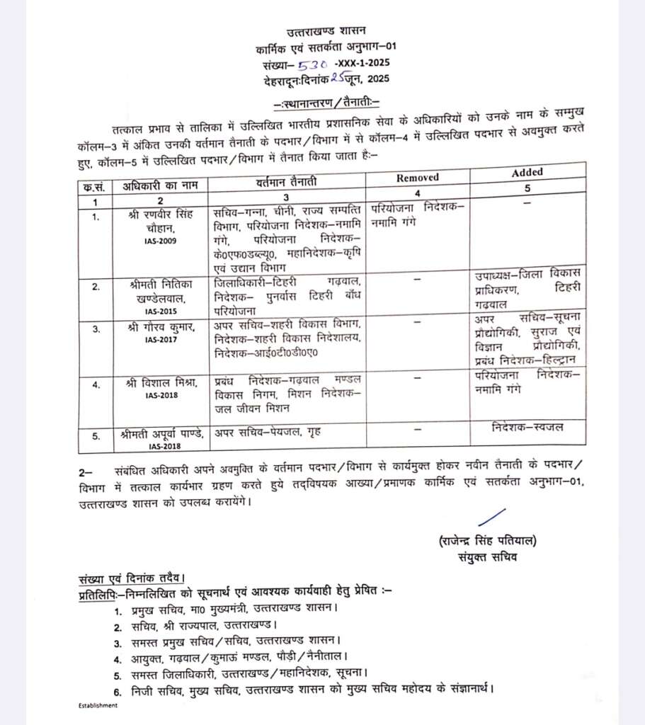 उत्तराखण्ड पांच आइएएस अधिकारियों के बदले पदभार, देखें लिस्ट Published 5 months ago on June 26, 2025 By CWN Desk Related Topics:featuredपांच आइएएस अधिकारियों के बदले पदभार Up Next उत्तराखंड में पंचायत चुनावों पर से हटी रोक, हाईकोर्ट ने सरकार से मांगा जवाब Don't Miss त्रिस्तरीय पंचायत चुनाव: कांग्रेस ने नियुक्त किए विधानसभा प्रभारी, पंचायती राज मंत्री पर उठाए सवाल CWN Desk You may like Click to comment Leave a ReplyYour email address will not be published. Required fields are marked *Comment * Name * Email * Website