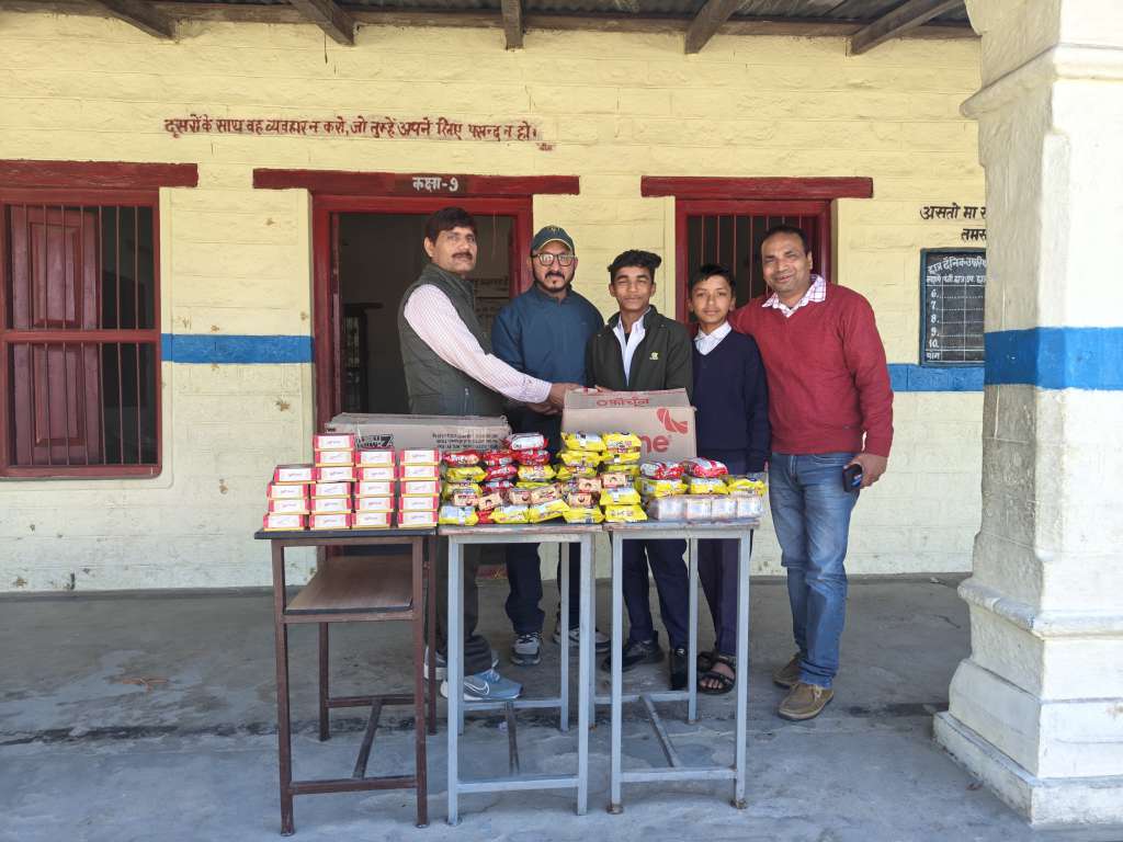 भीमताल। आज भीमताल ब्लॉक के आठ विद्यालयों में समाजसेवियों के एक समूह ने बच्चों के साथ खुशियों का त्योहार मनाया। हेमंत गोनिया, अमित रस्तोगी, वंश गोनिया और मुकेश बेलवाल ने मिलकर 205 बच्चों, अध्यापकों, भोजन माता और स्टाफ को मिठाई और बिस्कुट वितरित किए।
