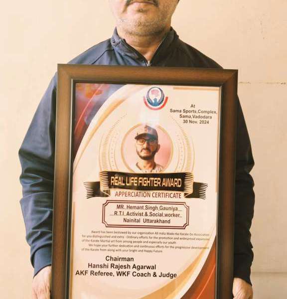 हल्द्वानी। उत्तराखंड के समाजसेवी हेमंत गौनिया और महिला सशक्तिकरण की अग्रणी कार्यकर्ता प्रेमा राणा को उनके उत्कृष्ट सामाजिक कार्यों के लिए “रियल लाइफ फाइटर” प्रमाण पत्र...