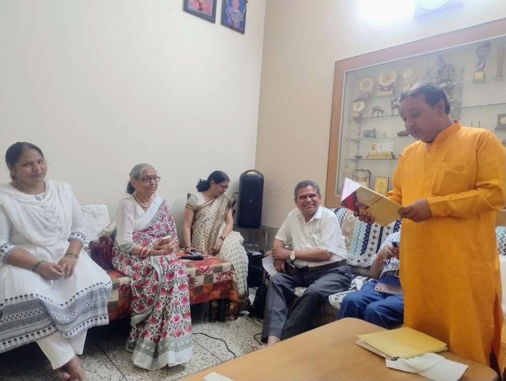 डा. सुशील कुमार त्यागी ‘अमित’ ने बेटी के सम्मान में कविता सुनाई, जबकि बृजेन्द्र हर्ष ने अपनी व्यथा-कथा में हृदय के भाव व्यक्त किए। मेजबान डा. मीरा भारद्वाज ने भक्ति रस से सजी रचना प्रस्तुत की, वहीं वृंदा शर्मा ने राधा-कृष्ण के प्रेम पर सुंदर शब्दों से वातावरण सजाया। डा. अशोक गिरि, आदर्शिनी श्रीवास्तव, अपराजिता उनमुक्त और दीन दयाल दीक्षित ‘दीन’ ने जीवन दर्शन, अहिंसा तथा देशभक्ति के भाव से ओत-प्रोत कविताएँ सुनाकर गोष्ठी को सफल बनाया।