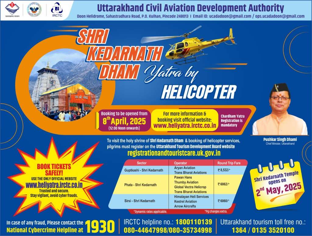 जनहित में अपील: 👉 केदारनाथ हेली सेवा हेतु केवल IRCTC अधिकृत बुकिंग प्लेटफ़ॉर्म है।